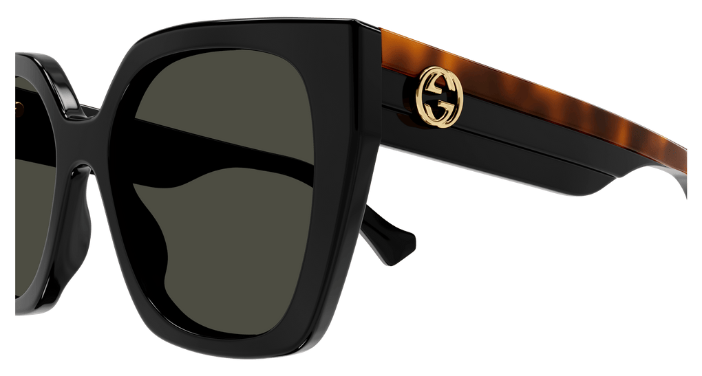 Elevate your eyewear with the Gucci 1300S sunglasses, characterized by their high nose bridge fit and thick acetate design, which exude a sense of premium craftsmanship. These sunglasses provide a universal nose bridge fit and curved arms that effortlessly adapt to your face, ensuring both style and comfort. With squared-based lenses that add a touch of a cat eye look and thick layered acetate temples, these sunglasses are a stylish statement of luxury.