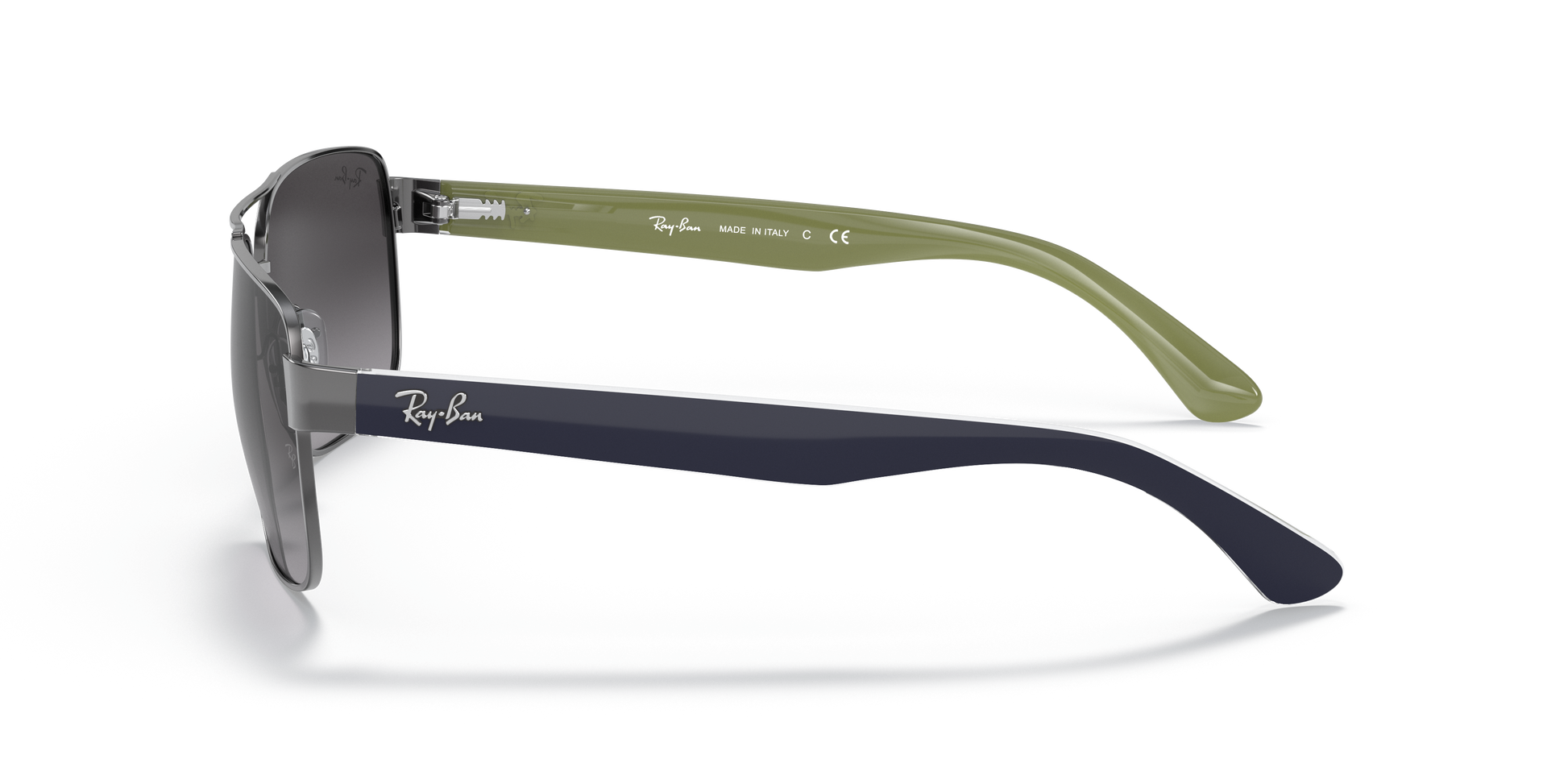Ray-Ban's 3530 showcases a robust steel frame paired with flat, contoured nylon temples, delivering a smooth yet secure fit for the wearer. Embracing a square shape with a wide bridge and adjustable nose pads, this frame offers a slightly larger fit best suited for individuals with broader facial dimensions and contours, especially those with round and oval face shapes.