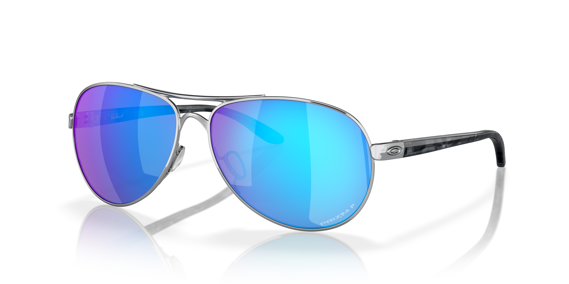 The Oakley® Feedback™ presents a distinct combination of elegance and sportiness, featuring a front constructed from the durable and sleek C-5™ wire paired with warm acetate stems. This design choice creates a versatile pair of sunglasses that serve the active woman, balancing the need for a comfortable, high-performance fit with the demands of contemporary style.