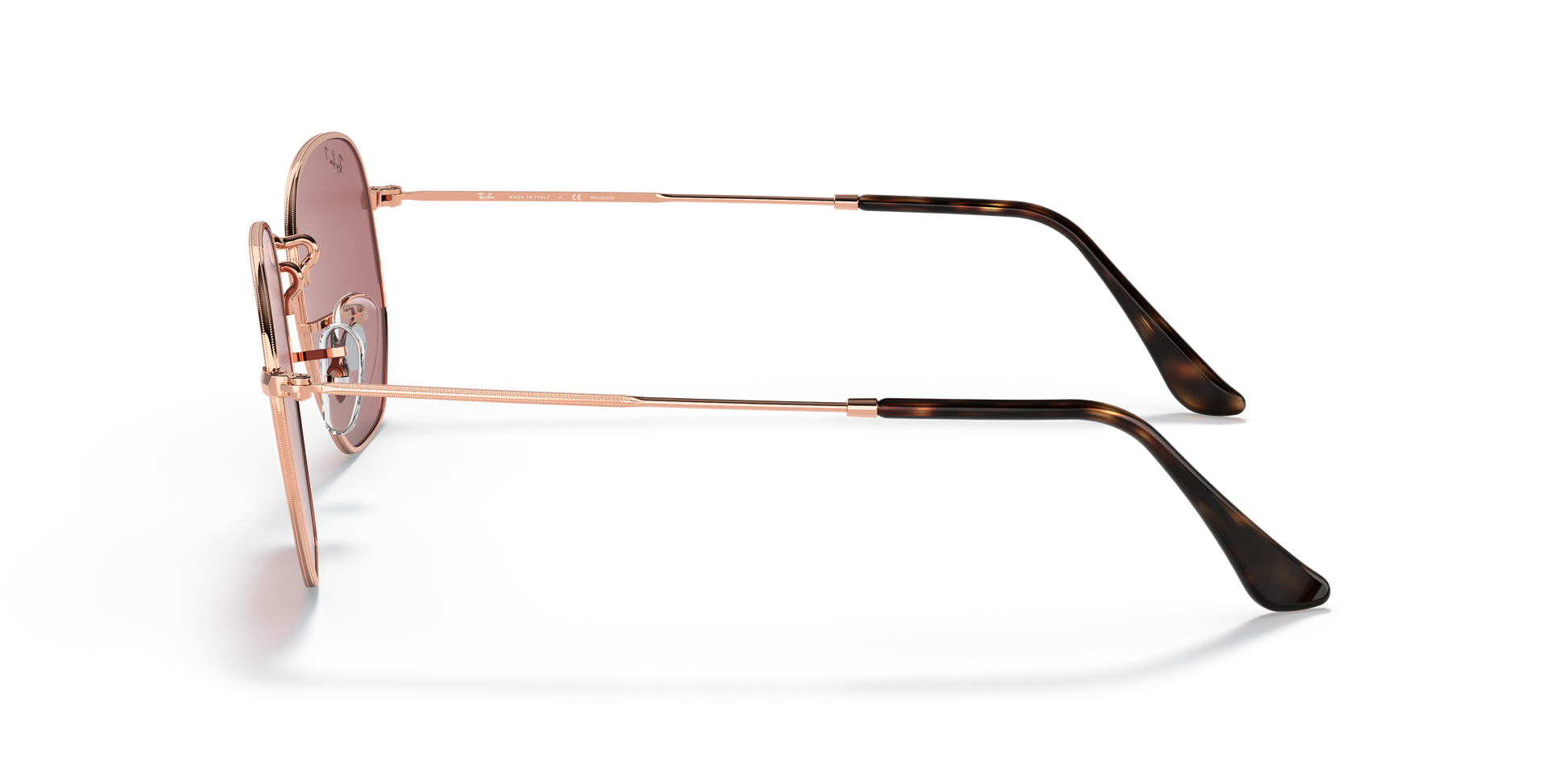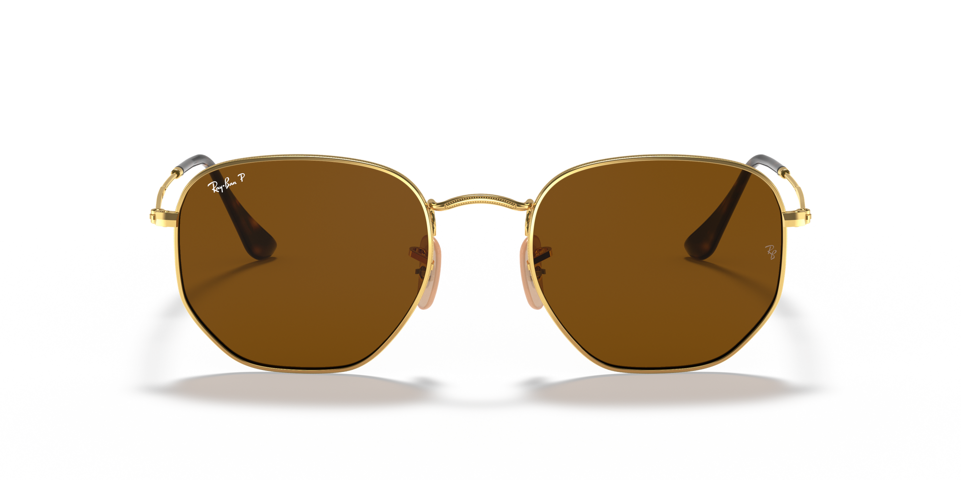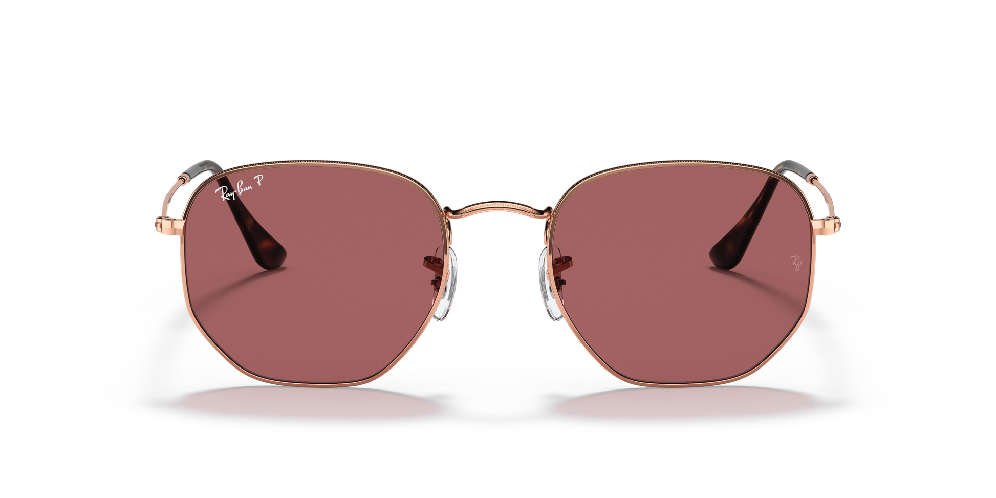 Ray-Ban's Hexagonal Large | Flat Lens features a metal frame complemented by thin, flat temples with acetate tips, ensuring a lightweight and comfortable fit behind the ears. The distinct, squared, hexagonal lens shape, combined with a broad bridge and adjustable nose pads, provides a larger fit and is ideally suitable for individuals with rounded facial features.