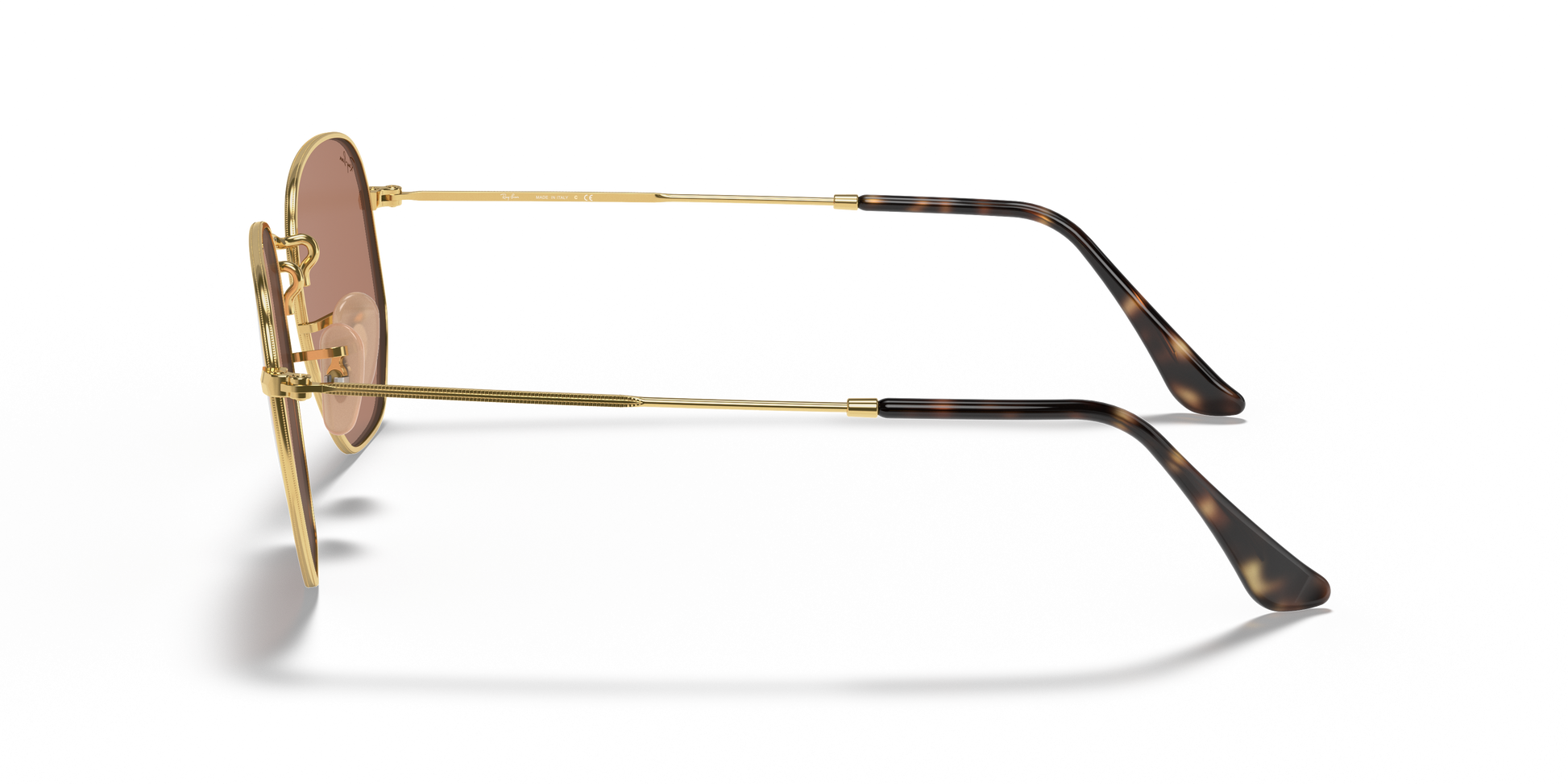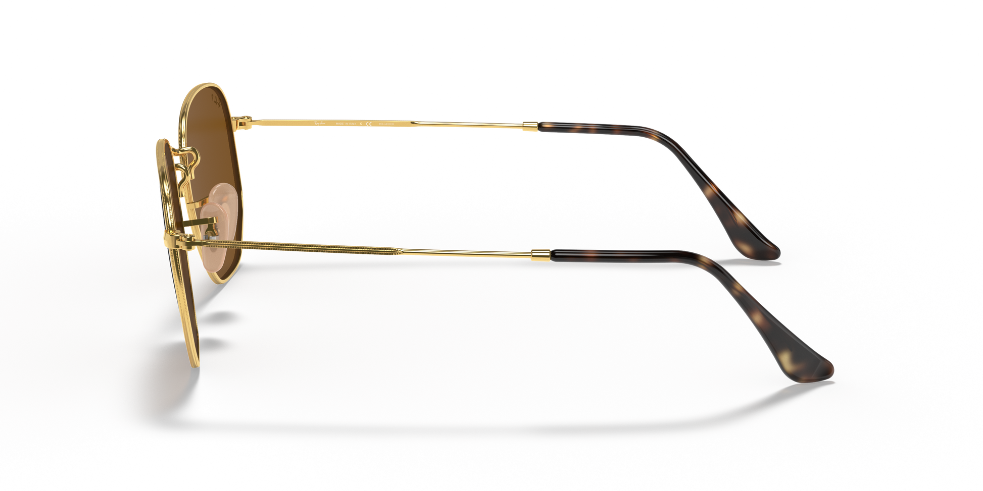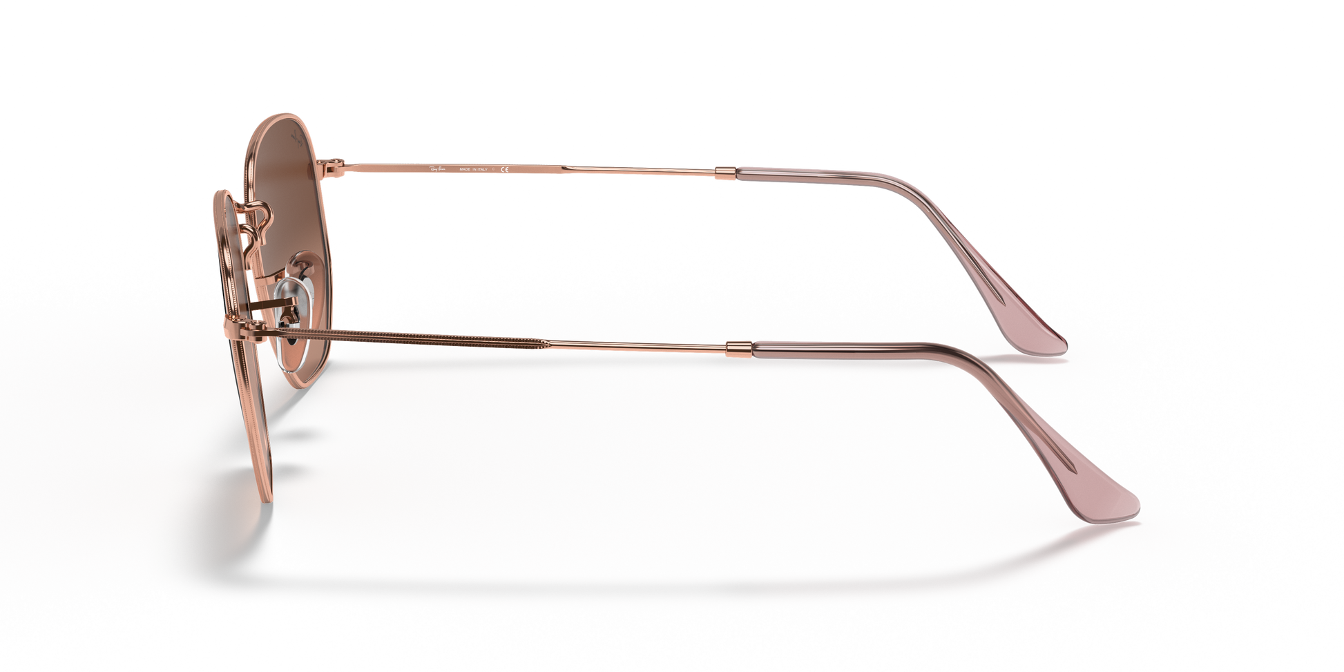 Ray-Ban's Hexagonal Large | Flat Lens features a metal frame complemented by thin, flat temples with acetate tips, ensuring a lightweight and comfortable fit behind the ears. The distinct, squared, hexagonal lens shape, combined with a broad bridge and adjustable nose pads, provides a larger fit and is ideally suitable for individuals with rounded facial features.