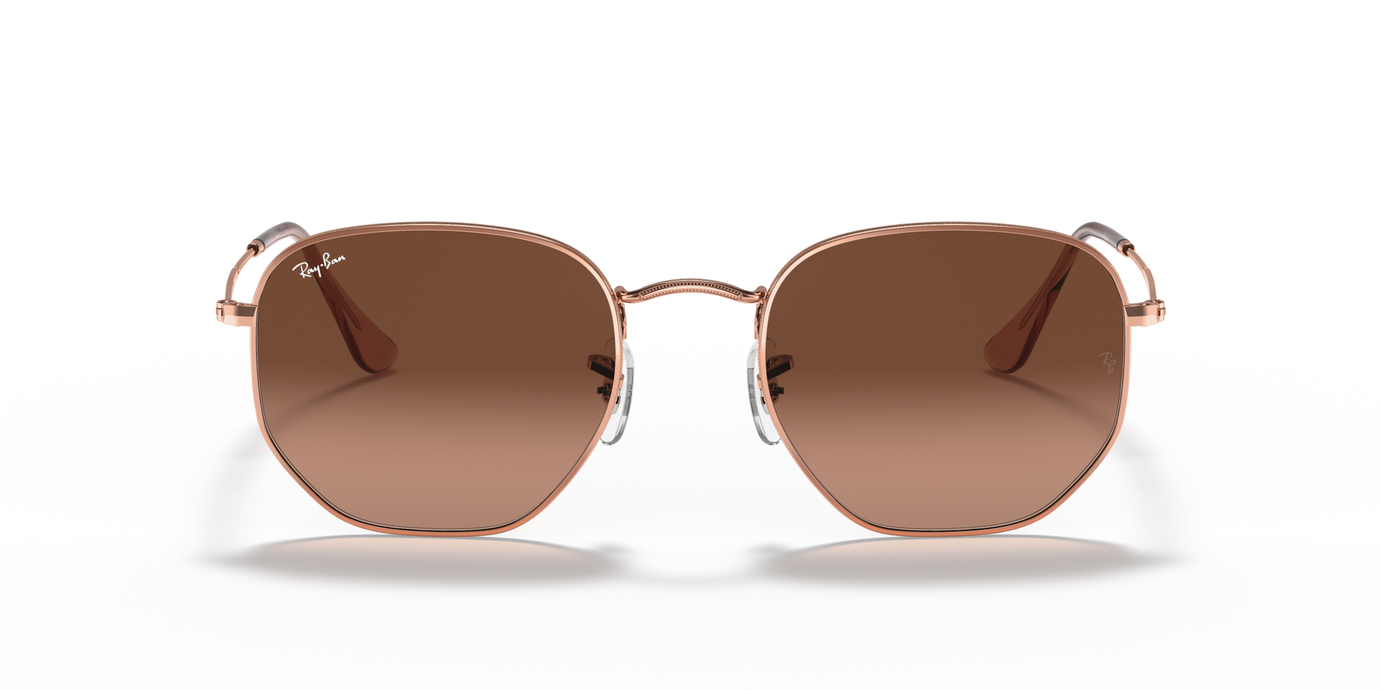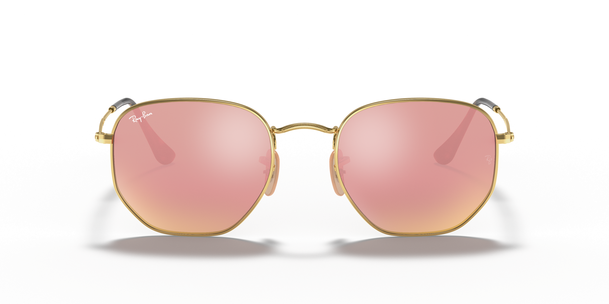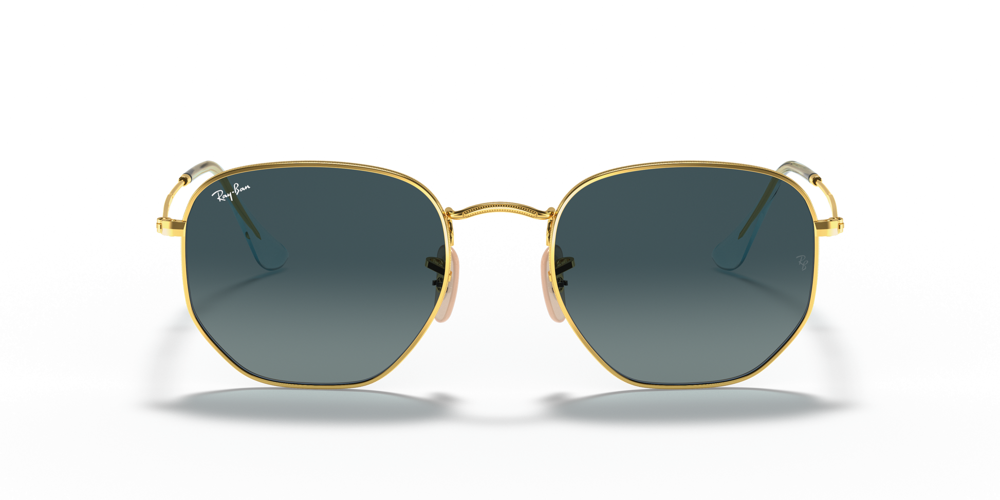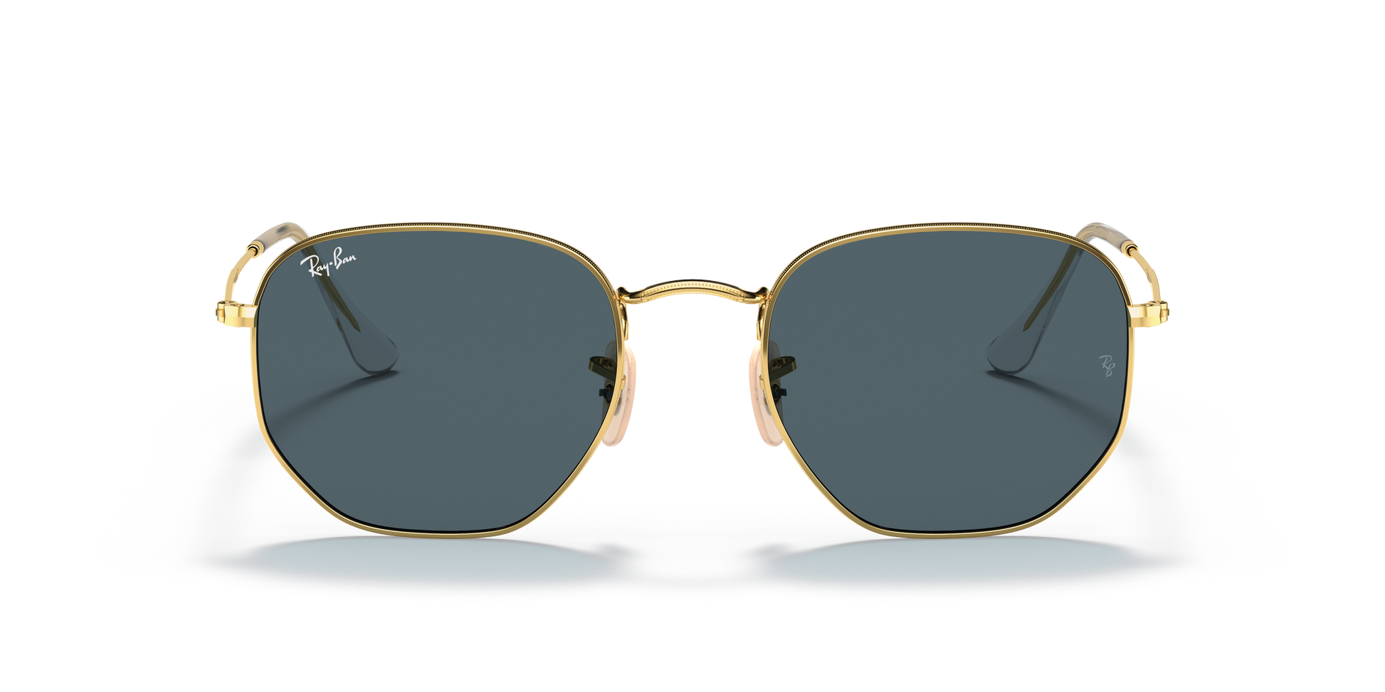Ray-Ban's Hexagonal Medium | Flat Lens features a metal frame complemented by thin, flat temples with acetate tips, ensuring a lightweight and comfortable fit behind the ears. The distinct squared, hexagonal lens shape, combined with a broader bridge and adjustable nose pads, provides a medium fit and is ideally suited for individuals with standard facial dimensions and more rounded features.