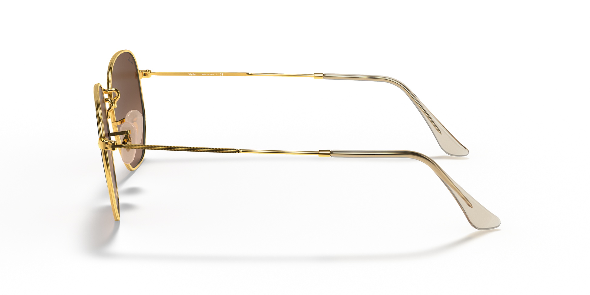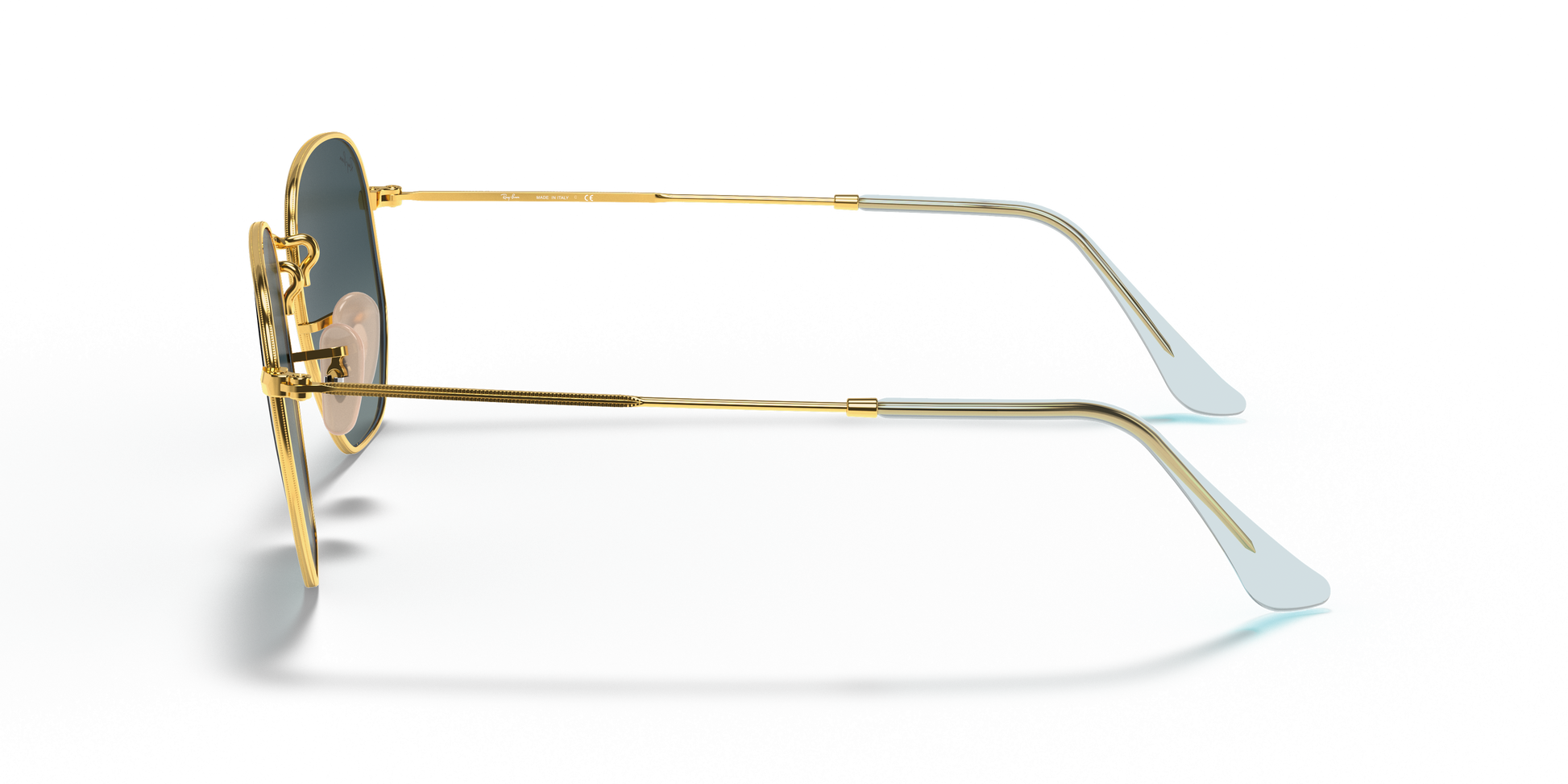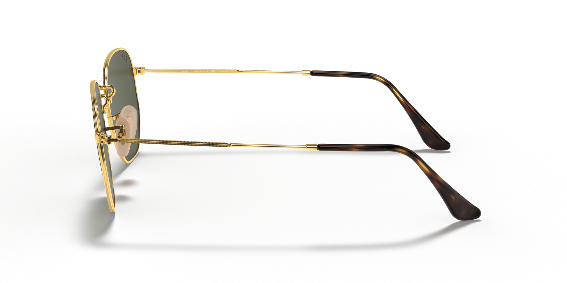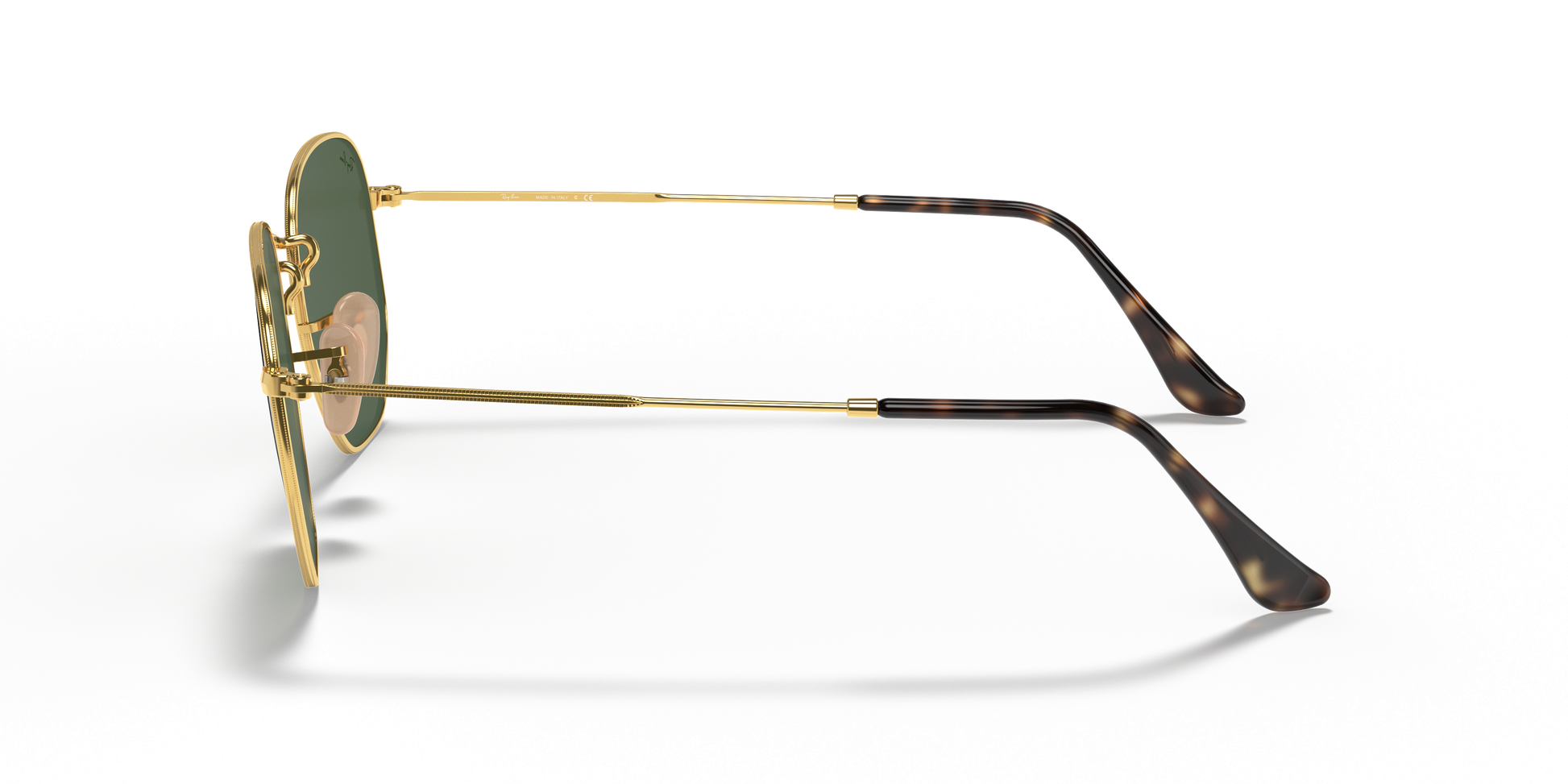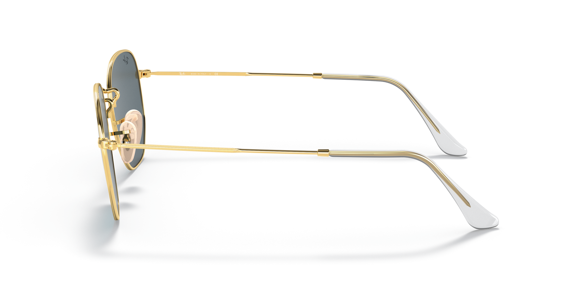 Ray-Ban's Hexagonal Medium | Flat Lens features a metal frame complemented by thin, flat temples with acetate tips, ensuring a lightweight and comfortable fit behind the ears. The distinct squared, hexagonal lens shape, combined with a broader bridge and adjustable nose pads, provides a medium fit and is ideally suited for individuals with standard facial dimensions and more rounded features.