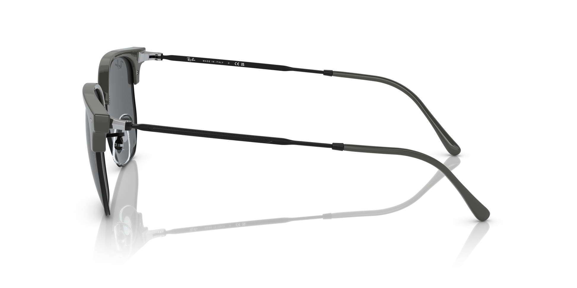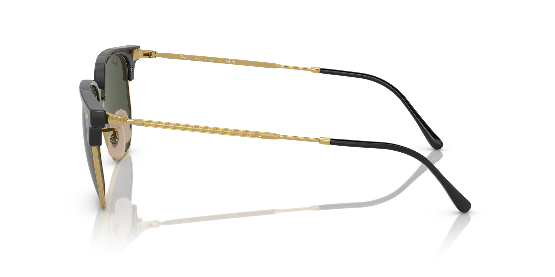 Ray-Ban's New Clubmaster Large, crafted from a lighter nylon-based material and paired with thin metal temples, offers a lighter, more streamlined fit. Emphasizing a round, beveled lens shape, complemented by a pronounced square browline and adjustable nose pads, this model provides a broad dimensional profile perfectly tailored for round and oval face shapes with larger features.