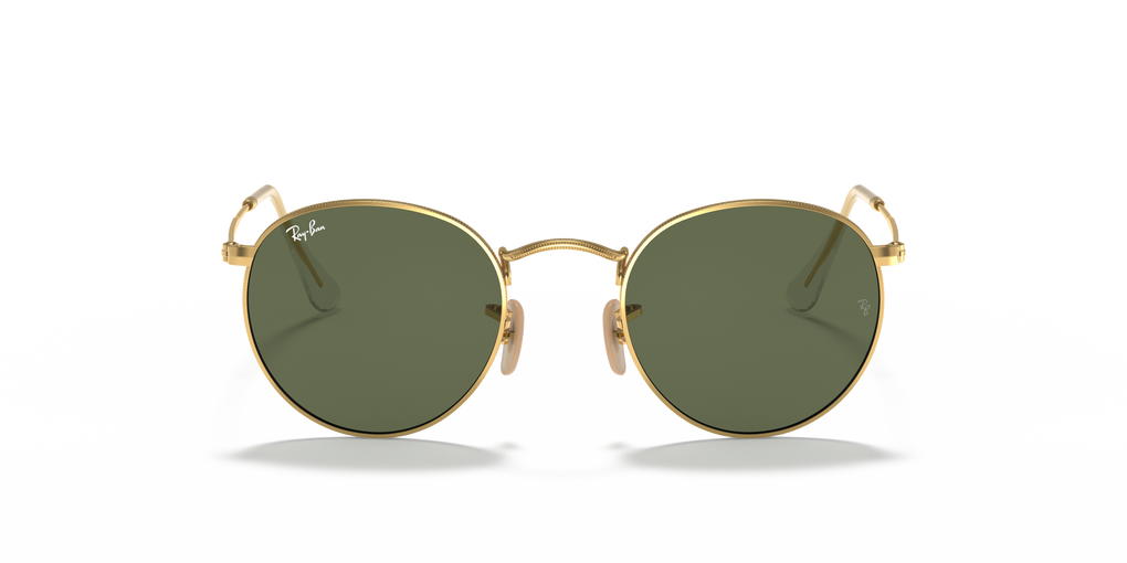 Make a statement with the Ray-Ban ROUND LARGE Flat Lens sunglasses in gold with classic green lenses. These iconic frames, a timeless tribute to Ray-Ban's heritage, feature a sleek, modern flat lens design that elevates any look. The luxurious gold frame adds a touch of sophistication, while the green lenses offer superior UV protection and a cool, stylish tint. Perfect for adding effortless cool to your everyday style or making a bold fashion statement, these Ray-Ban sunglasses are a must-have accessory.